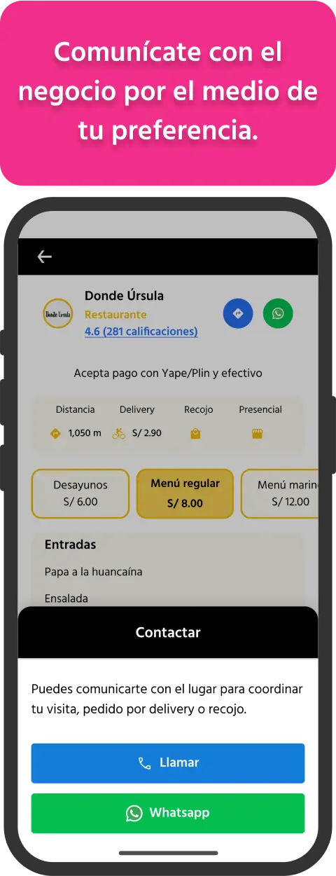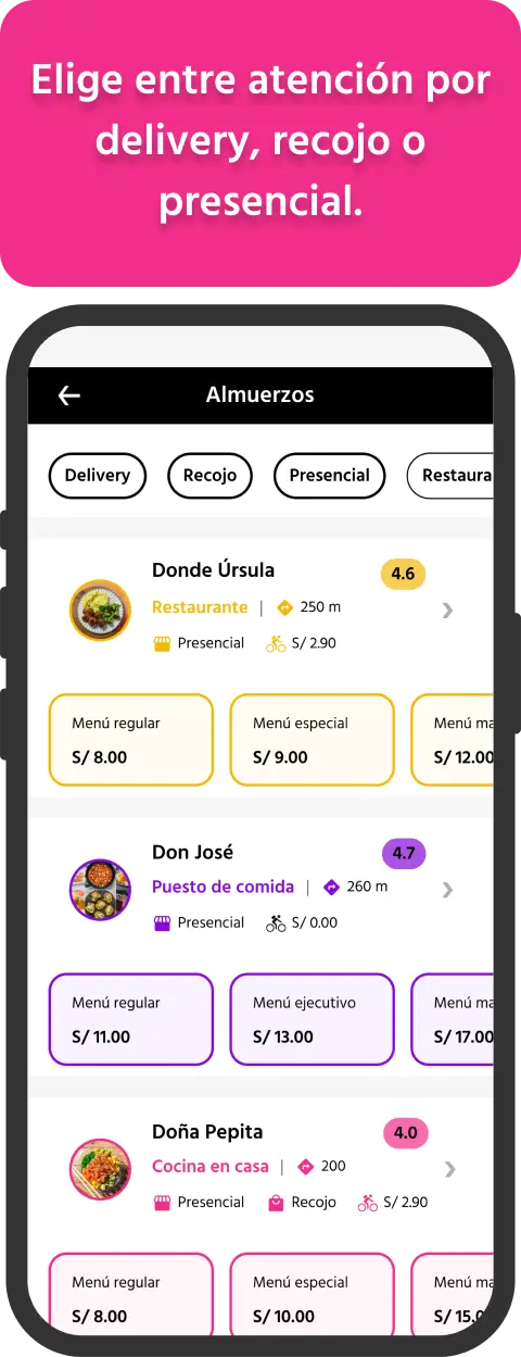 Podrás elegir entre atención presencial, recojo o delivery.