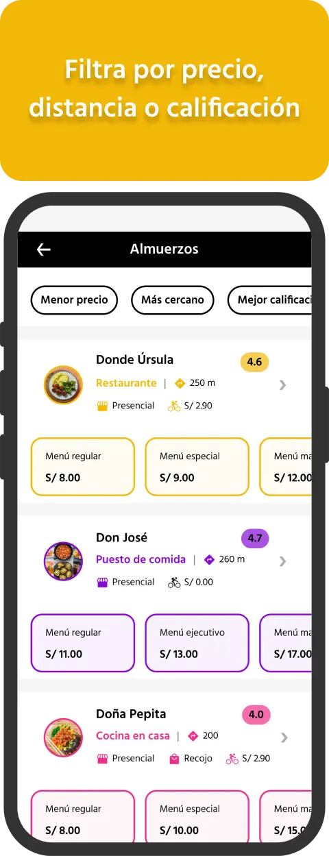 Filtrarás los resultados de tu búsqueda por precio, distancia o calificación.