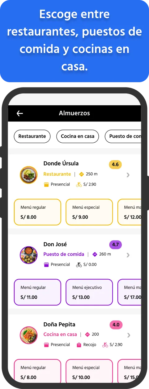 Encontrarás restaurantes, puestos de comida y cocinas en casa.