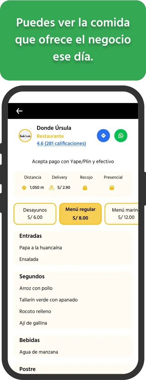 Puedes ver la comida que ofrece el negocio ese día.